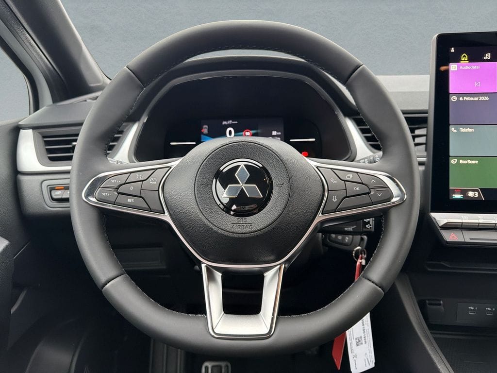 Airbag Beifahrerseite abschaltbar, Airbag Fahrer-/Beifahrerseite, Außenspiegel elektr. verstell- und heizbar, Außenspiegel schwarz, Bluetooth-/Audio-Schnittstelle, Bremsassistent, Dachhimmel dunkelgrau, Dachspoiler mit 3. Bremsleuchte, Dekor-/Zierstreifen silber, Einparkhilfe hinten, Einschaltautomatik für Fahrlicht, Elektr. Bremskraftverteilung, Elektron. Stabilitäts- und Traktionskontrolle (MASC + MATC), Fahrassistenz-System: Auffahrwarnsystem inkl. Fußgängererkennung und Notbremsassistent (FCM+), Fahrassistenz-System: Aufmerksamkeits-Assistent (DAM), Fahrassistenz-System: Berganfahrhilfe, Fahrassistenz-System: Fernlichtassistent, Fahrassistenz-System: Spurhalteassistent, Fahrassistenz-System: Spurverlassenswarnung (LDW), Fahrassistenz-System: Verkehrszeichenerkennung (TSR), Fensterheber elektr. vorn links mit Impulsgeber, Fensterzierleisten schwarz, Freisprecheinrichtung Bluetooth, Gepäck-/Laderaumboden doppelt, Gurtstraffer vorn, Heckleuchten LED, Heckscheibe heizbar, Infotainment-System: 10,4" Touchscreen, DAB+, Infotainment-System: Mitsubishi Remote Services, Innenspiegel abblendbar, Isofix-Aufnahmen für Kindersitz, Karosserie: 5-türig, Kombiinstrument digital (7,0 Zoll), Kopf-Airbag-System, Kopfstützen verstellbar, Laderaumabdeckung, Lenkrad mit Multifunktion, Lenksäule (Lenkrad) höhen-/längsverstellbar, Modellpflege, Motor 1,2 Ltr. - 84 kW, Notbrems-Warnblinkautomatik (ESS), Notrufsystem (eCall), Otto-Partikelfilter (OPF), Radioempfang digital (DAB+), Radiovorbereitung, 6 Lautsprecher, Radstand 2639 mm, Reifen-Reparaturkit, Reifendruck-Kontrollsystem, Rückfahrkamera, Rücksitz geteilt / klappbar, Rücksitze (2.Reihe) verschiebbar, Schadstoffarm nach Abgasnorm Euro 6e, Scheinwerfer LED, Seitenairbag, Seitenschweller schwarz, Sitz vorn links höhenverstellbar, Sitzbezug / Polsterung: Stoff, Smartphone kabellose Schnittstelle (Apple CarPlay & Android Auto), Sonnenblenden mit Make-up-Spiegel, Start/Stop-Anlage (ASG), Steckdose (12V-Anschluß) in Mittelarmlehne / Mittelkonsole, Stoßfängerblende und Heckdiffusor schwarz, Tagfahrlicht LED, Türgriffe außen Wagenfarbe, Unterfahrschutz vorn und hinten schwarz, USB-/Audio-Schnittstelle, USB-Anschlüsse (Typ C) Mittelkonsole vorn, Wärmeschutzverglasung
