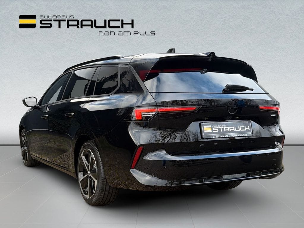 Erleben Sie den neuen Opel Astra Kombi, ein Fahrzeug mit beeindruckender Ausstattung und modernem Design. Diese Tageszulassung in elegantem Schwarz-Metallic überzeugt durch seinen effizienten 3-Zylinder-Benzinmotor mit 145 PS und Frontantrieb.