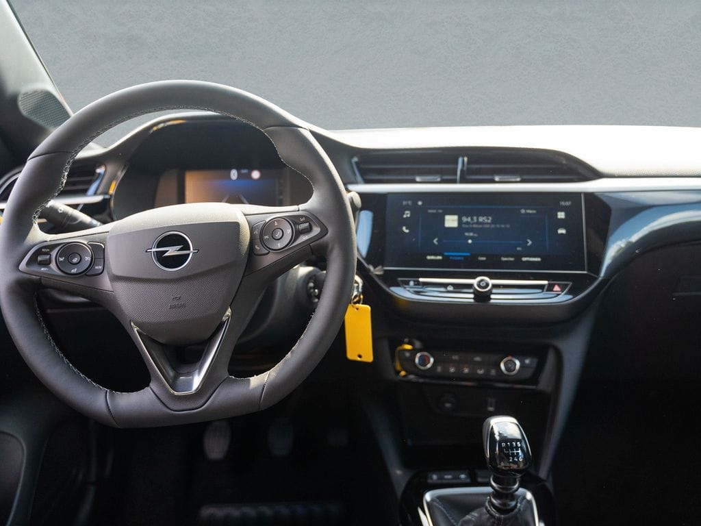 6 Lautsprecher, Airbag Fahrer-/Beifahrerseite, Audiosystem Multimedia, Außenspiegel elektr. verstell- und heizbar, elektr. anklappbar, B-Säulen schwarz Hochglanz (außen), Bordcomputer, Bremsassistent, Dach Kontrast-Lackierung, Dachhimmel schwarz, Elektron. Stabilitäts-Programm Plus (ESP), Fahrassistenz-System: Berganfahr-Assistent (HSA, Hill Start Assist), Fahrassistenz-System: Müdigkeitserkennungs-Sensor, Fahrassistenz-System: Spurhalteassistent, Fahrassistenz-System: Totwinkel-Assistent, Fahrassistenz-System: Verkehrszeichenerkennung, Fensterheber elektrisch vorn + hinten, Fensterheber vorn elektr. mit Einklemmschutz, Gepäckraumbeleuchtung (LED), Heckleuchten LED, Heckscheibenwischer, Innenausstattung: Dekorleisten Rot, Isofix-Aufnahmen für Kindersitz an Beifahrersitz, Isofix-Aufnahmen für Kindersitz an Rücksitz, Karosserie: 5-türig, Kombiinstrument digital, Kopf-Airbag-System, Kraftstofftank 44 Ltr., Lenkrad (Leder, vegan) mit Multifunktion, Lenksäule (Lenkrad) verstellbar, Leseleuchten vorn (2), Mittelarmlehne vorn mit Ablagefach, Modellpflege, Motor 1,2 Ltr. - 74 kW, Nebelschlussleuchte, Opel Connect, Otto-Partikelfilter (OPF), Parkpilotsystem vorn und hinten, Pedale Aluminium, Reifen-Reparaturkit, Rückfahrkamera mit 180° Umgebungsansicht, Rücksitzbank geteilt/klappbar (60:40), Schadstoffarm nach Abgasnorm Euro 6e, Seitenairbag vorn, Sicht-Paket, Sitzbezug / Polsterung: Stoff, Sportsitze vorn, Start/Stop-Anlage, Stoßfänger Sport-Design, Stoßfänger Wagenfarbe, Türgriffe außen Wagenfarbe, Türgriffe innen verchromt, Warnanlage für Sicherheitsgurt, Beifahrerseite, Warnanlage für Sicherheitsgurt, Fahrerseite, Warnanlage für Sicherheitsgurte hinten