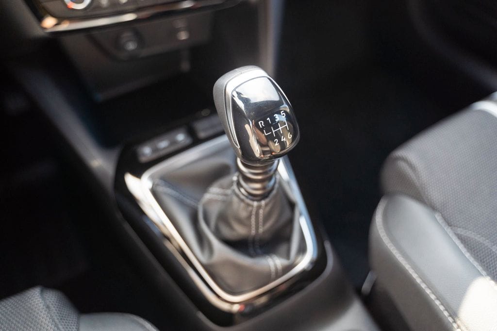 Der 101 PS starke 3-Zylinder-Benzinmotor mit 1199 ccm Hubraum überzeugt durch seine Effizienz und erfüllt die strenge Euro 6e-Norm. Die graue Metallic-Lackierung harmoniert perfekt mit dem schwarzen Stoffinterieur.