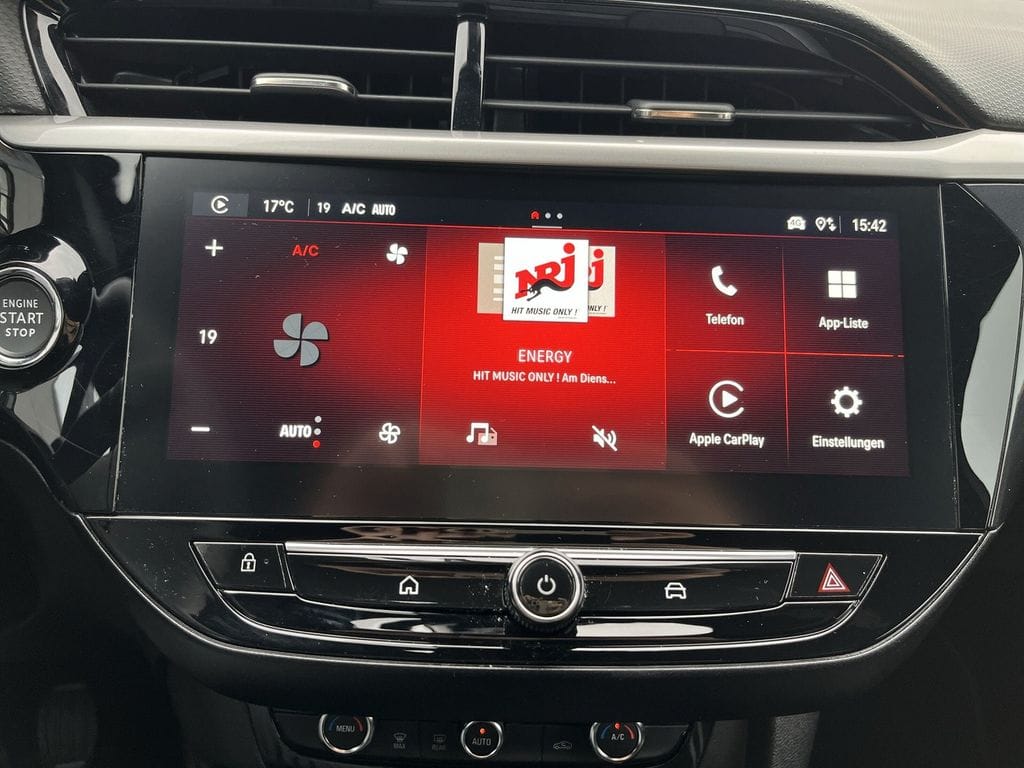 6 Lautsprecher, Airbag Fahrer-/Beifahrerseite, B-Säulen schwarz Hochglanz (außen), Bordcomputer, Bremsassistent, Dach Kontrast-Lackierung, Dachhimmel schwarz, Einparkhilfe vorn und hinten mit Parksensoren seitlich, Elektron. Stabilitäts-Programm Plus (ESP), Fahrassistenz-System: Berganfahr-Assistent (HSA, Hill Start Assist), Fahrassistenz-System: Müdigkeitserkennungs-Sensor, Fahrassistenz-System: Spurhalteassistent, Fahrassistenz-System: Totwinkel-Assistent, Fahrassistenz-System: Verkehrszeichenerkennung, Farbdisplay (7 Zoll), Fensterheber elektrisch vorn + hinten, Fensterheber vorn elektr. mit Einklemmschutz, Gepäckraumbeleuchtung (LED), Geschwindigkeits-Regelanlage (Tempomat) inkl. Geschwindigkeits-Begrenzeranlage, Heckleuchten LED, Heckscheibenwischer, Innenausstattung: Dekorleisten Rot, Isofix-Aufnahmen für Kindersitz an Beifahrersitz, Isofix-Aufnahmen für Kindersitz an Rücksitz, Karosserie: 5-türig, Kopf-Airbag-System, Kraftstofftank 44 Ltr., Lenkrad (Leder, vegan) mit Multifunktion, Lenksäule (Lenkrad) verstellbar, Leseleuchten vorn (2), Mittelarmlehne vorn mit Ablagefach, Modellpflege, Motor 1,2 Ltr. - 74 kW, Nebelschlussleuchte, Opel Connect, Otto-Partikelfilter (OPF), Pedale Aluminium, Reifen-Reparaturkit, Rücksitzbank geteilt/klappbar (60:40), Schadstoffarm nach Abgasnorm Euro 6e, Seitenairbag vorn, Sicht-Paket, Sitzbezug / Polsterung: Stoff, Sportsitze vorn, Stoßfänger Sport-Design, Stoßfänger Wagenfarbe, Türgriffe außen Wagenfarbe, Türgriffe innen verchromt, Warnanlage für Sicherheitsgurt, Beifahrerseite, Warnanlage für Sicherheitsgurt, Fahrerseite, Warnanlage für Sicherheitsgurte hinten