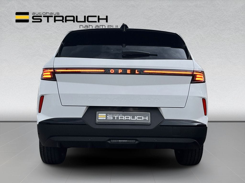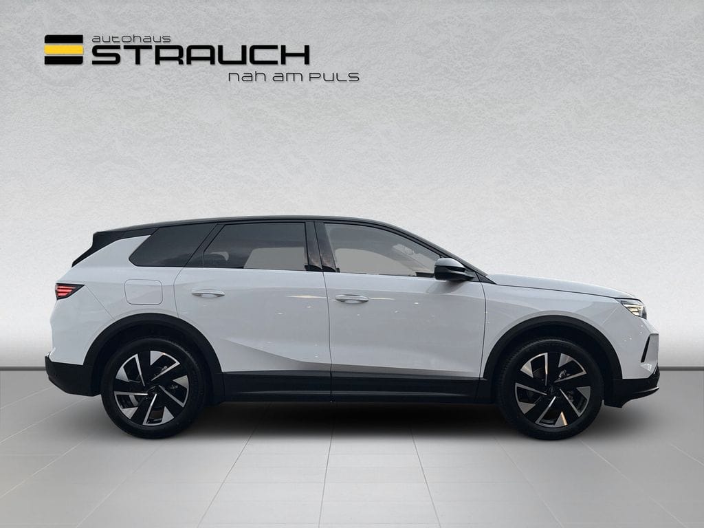 Erleben Sie den Opel Grandland in elegantem Weiß-Metallic mit schwarzer Teillederausstattung. Der 145 PS starke 3-Zylinder-Benzinmotor bietet dank Frontantrieb und Automatikgetriebe ein dynamisches Fahrerlebnis bei gleichzeitiger Effizienz (Euro 6e).