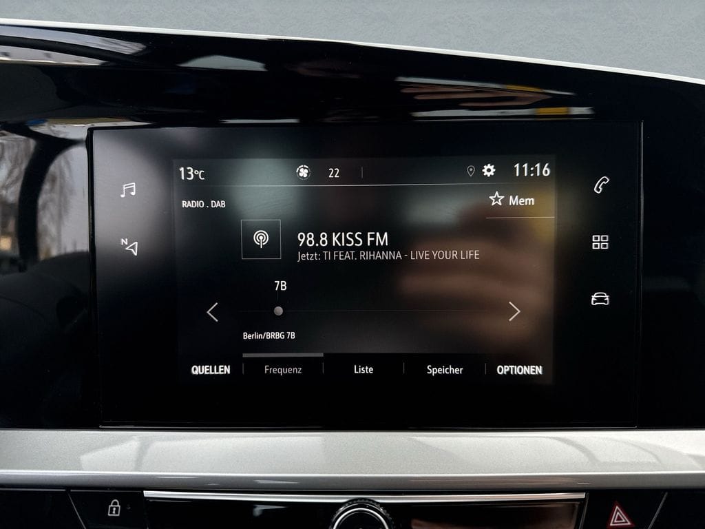 Audiosystem Multimedia, Außenspiegel elektr. verstell- und heizbar, elektr. anklappbar, Bluetooth Audio-Streaming, DAB-Tuner (Radioempfang digital), Dachhimmel Grau, Dachspoiler, Elektron. Stabilitäts-Programm Plus (ESP), Fahrassistenz-System: Fernlichtassistent, Fahrassistenz-System: Müdigkeitserkennungs-Sensor, Fahrassistenz-System: Verkehrszeichenerkennung, Fahrzeugschlüssel (2) beide klappbar, Feststellbremse elektrisch, Freisprecheinrichtung Bluetooth, Getriebe Automatik - mit Start-/Stop (8-Stufen), Heckleuchten LED, Karosserie: 5-türig, Klimaautomatik, Kopf-Airbag-System, Kühlergrill, Opel Vizor, Rahmen in Chrom, Lenkrad heizbar, LM-Felgen, Motor 1,2 Ltr. - 96 kW, MP3-Schnittstelle für Mobiltelefon/Handy, Nebelscheinwerfer LED, Otto-Partikelfilter (OPF), Radstand 2557 mm, Reifen-Reparaturkit, Schadstoffarm nach Abgasnorm Euro 6e, Scheinwerfer LED, Seitenairbag vorn, Sicht-Paket, Start/Stop-Anlage, Wärmeschutzverglasung
