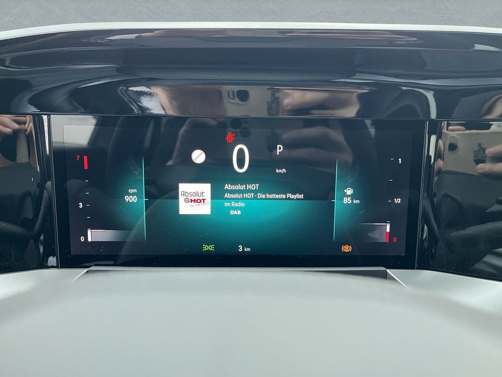 Die umfangreiche Sicherheitsausstattung umfasst Spurhalteassistent, Totwinkelwarner, Kollisionsvermeidung und adaptiven Tempomat. Das Fahrzeug verfügt über ein digitales Cockpit mit Navigationssystem, Touchscreen und kabelloser Ladestation.